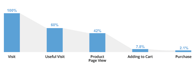 Each contact with a user builds trust and warms their interest in making a purchase. Let’s take the most common enhanced ecommerce funnel and consider the following steps: