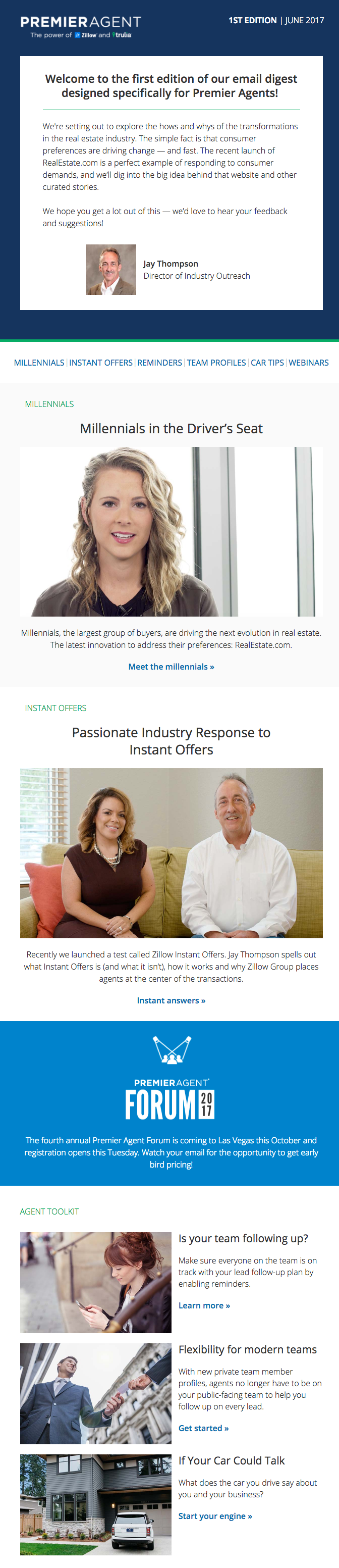 Plus, the email offers three trending real estate topics, keeping the balance between fun and value.
