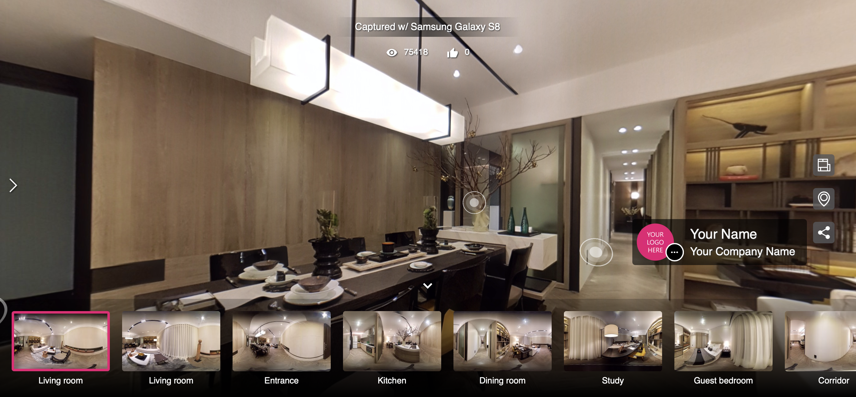 You can use virtual tours in ad campaigns or on the website to inspire your consumers or save time on showings. Look at one of the stunning live tours captured with Samsung Galaxy S8.