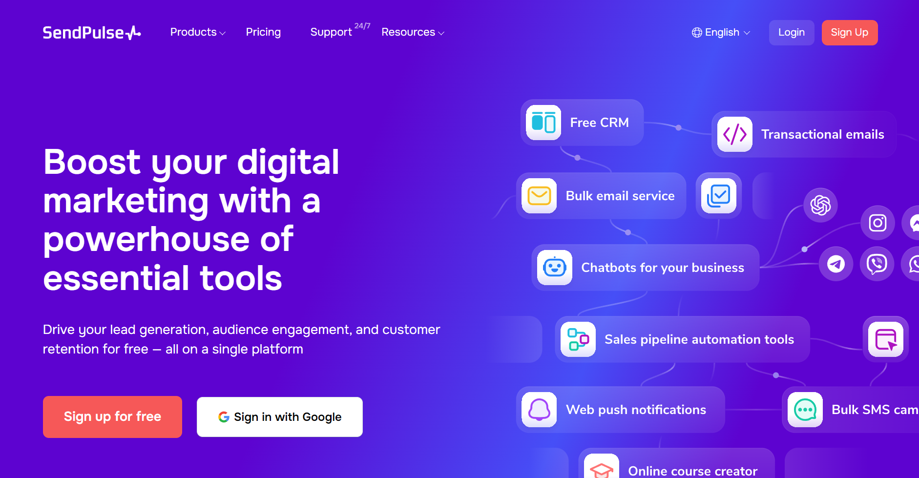 - Use marketing automation. Consider incorporating automation to run your email campaigns, social media campaigns, and customer communication on autopilot without human intervention. They will help you deliver your campaigns at the right time through planning and scheduling features. With live chat and chatbots, you can promptly respond to customer concerns across any time zone. Platforms like SendPulse can assist you in building chatbots for Telegram, WhatsApp, Instagram, and Facebook Messenger and add live chat to your website in no time without coding skills.
