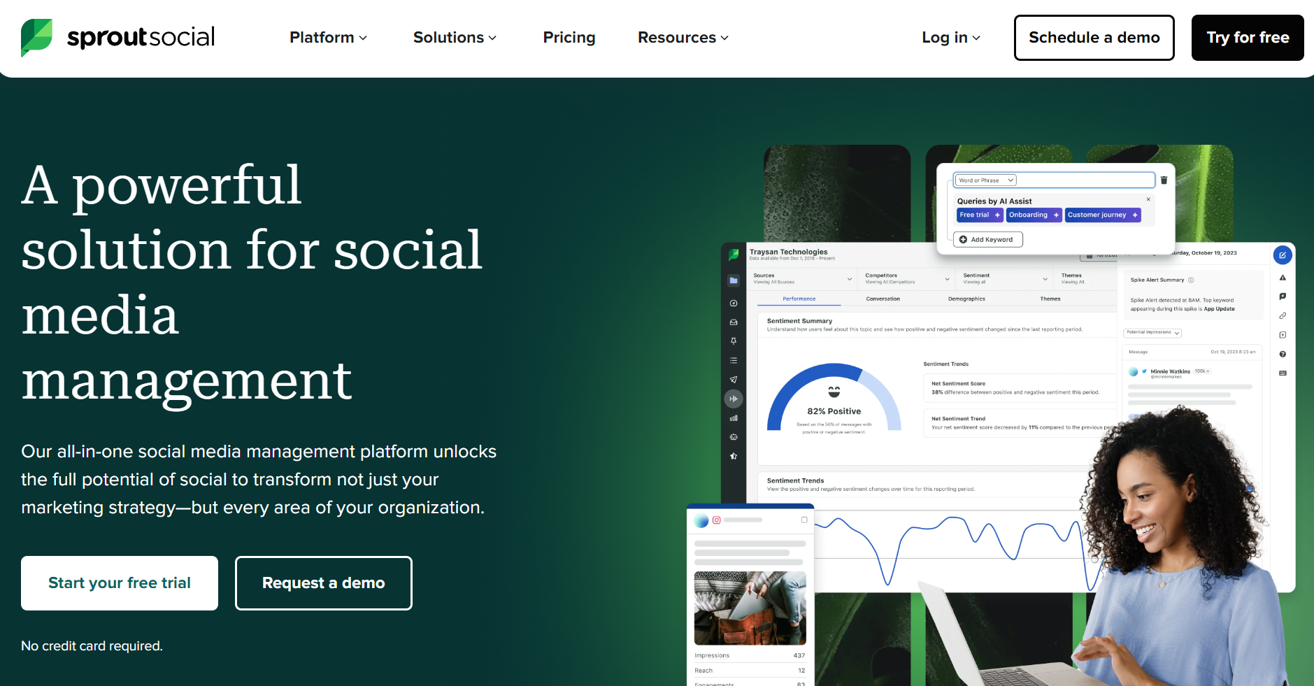 Sprout Social is an all-in-one social media management tool that empowers you to share content on multiple social media networks and optimize your multichannel marketing strategy. This solution offers publishing, analytics, listening, advocacy, and influencer marketing tools, helping you enhance customer experience and engagement across the communication channels you choose.
